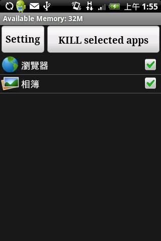 按下KILL selected apps後會把後面有打勾的程式關閉
