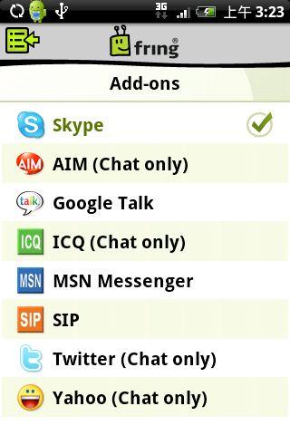 之前我一直是Symbian系統的使用者,常常使用fring來撥打Skype或是即時通與好友傳訊,後來跳轉到Android上後發現居然沒有fring有點失望(好吧,也許是我沒做功課XD),Android也沒有Skype out的解決方案
