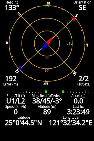 GPS Status是一個整合了電子羅盤,水平感應器,GPS等相關感應器的程式,可以顯示目前所在的位置,方向,加速度等等資訊
