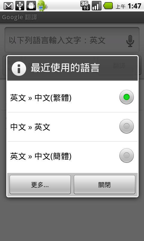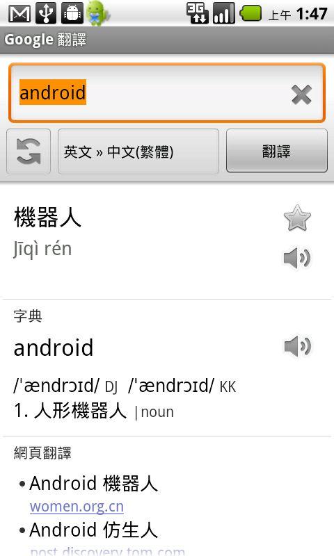 您可以在Android Market搜尋"Google翻譯"